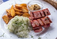 Большая тарелка с Краковской колбасой на гриле с гарниром